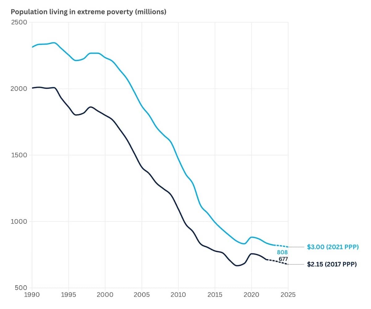 Como consecuencia, el Banco Mundial considera que más de 800 millones de personas viven en pobreza extrema (frente a casi 700 millones antes de la actualización). Esto no significa que haya habido un deterioro en la calidad de vida de millones de personas: simplemente, el umbral es ahora más alto.